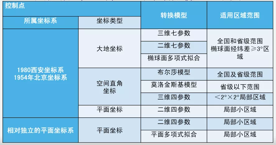 控制點轉換到2000國家大地坐標系的轉換模型及適用范圍
